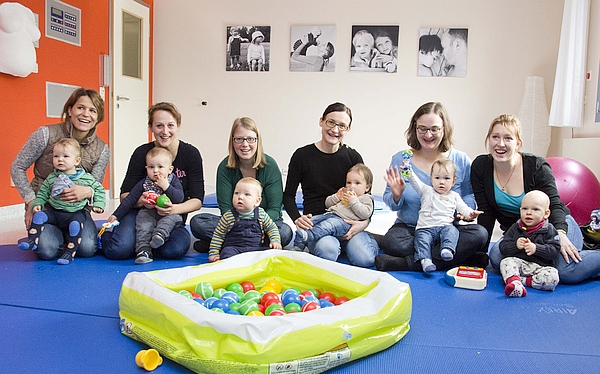 „Unser Angebot richtet sich an Kinder von etwa acht Wochen bis zwölf Monate“, erklärt Karina Brötzenberger, die jeden 1. und 3. Dienstag im Monat in die Elternschule des Klinikums einlädt. Sie ist Kinderkrankenschwester mit der Weiterbildung zur Familienkinderkrankenschwester und begleitet die offene Eltern-Kind-Gruppe.