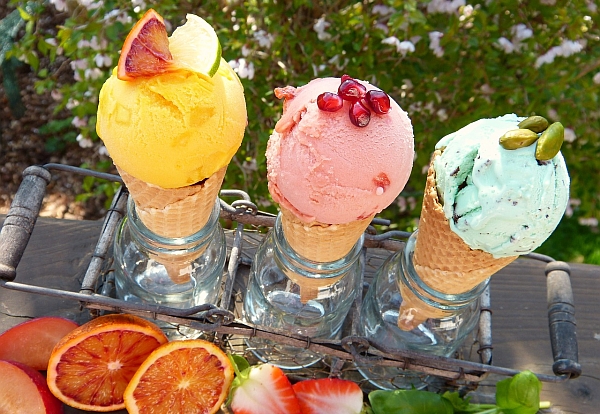 (ra). Schon im alten China sollen die Menschen sich an warmen Tagen mit Eis erfrischt haben. Eiscreme, Wassereis, Sorbet – die kalten Süßspeisen gehören für Jung und Alt zum Sommer wie Lebkuchen zu Weihnachten. Klassische Eiscreme besteht üblicherweise aus einer Mischung von Milch, Sahne und Eigelb, die mit Früchten, Schokolade, Nüssen oder anderen Geschmacksgebern aromatisiert wird. Wassereis hingegen setzt, wie der Name bereits sagt, auf gesüßtes Wasser als Grundzutat, das seinen Geschmack etwa durch Fruchtsaft oder Limonade bekommt. Sorbet schließlich wird aus Fruchtsaft und -püree hergestellt, manchmal mit Sekt oder Champagner verfeinert.