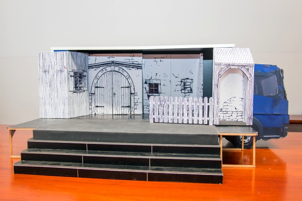 Der KULTURmobil-Lastwagen wird sich im Sommer 2018 wieder in eine Bühne verwandeln. Das Konzept für die beiden Bühnenbilder ist bereits fertig. Auf dem Foto das geplante Bühnenbild für das Kinderstück – vorgesehen ist, dass Kinder während des Theaterstücks das Bühnenbild sogar anmalen dürfen. – Foto: Bezirk Niederbayern