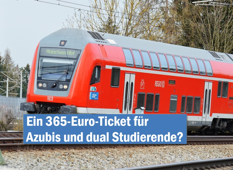 (ra) Eine Umfrage der DGB-Jugend Bayern zeigt: Lange Fahrtwege und hohe Fahrtkosten sind Alltag für viele Auszubildende. Dazu sagte am Mittwoch Martin Birkner, DGB-Jugendsekretär für die Region Niederbayern: „Wir brauchen im Freistaat jetzt ein kostengünstiges, flächendeckendes 365 Euro-Ticket für Auszubildende und dual Studierende!“