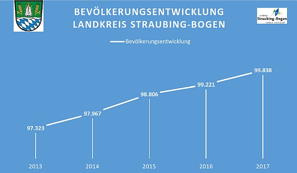(ra) Der Landkreis Straubing-Bogen wächst weiter: Das Bayerische Landesamt für Statistik hat nun die neuesten Bevölkerungszahlen mit Stichtag 31. Dezember 2017 veröffentlicht. Demnach lebten zu diesem Zeitpunkt im Landkreis 99.838 Einwohner und damit 617 Menschen mehr als noch ein Jahr zuvor.