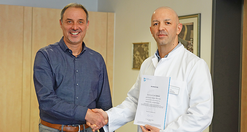 Als Facharzt für Orthopädie und Unfallchirurgie, ausgebildeter Notfallmediziner, Leitender Notarzt und dank seiner über 20jährigen ärztlichen Berufserfahrung brachte Jebelean bereits eine gute Grundlage für den Aufbau des Spezialwissens mit. Mit einer Prüfung bei der Bayerischen Ärztekammer in München schloss er die Weiterbildung erfolgreich ab. Zu diesem Erfolg gratulierte am Mittwoch im Namen der Klinik Mallersdorf Christian Schwarz, Stellvertretender Vorstand der Kreiskliniken Bogen-Mallersdorf. Er verwies darauf, dass diese Qualifikation in Zukunft eine zentrale Voraussetzung dafür sein werde, dass am Standort die Notfallversorgung weiterhin vorgehalten werden dürfe. Er dankte dem Leitenden Arzt für sein berufsbegleitendes Engagement und die Bereitschaft, diese Qualifikation am Haus einzubringen, von der nicht nur die Patienten, sondern auch das gesamte Team profitieren werden.