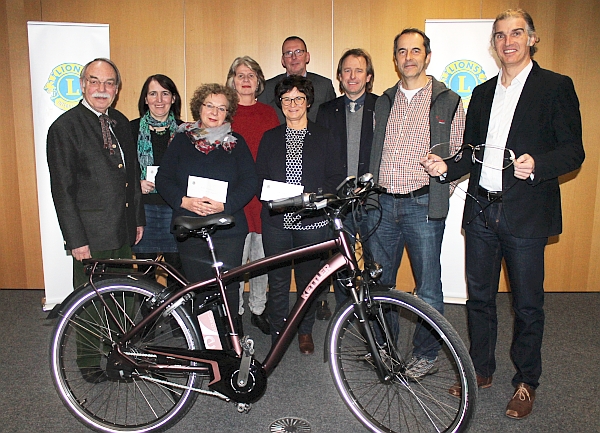 Stellvertretend für alle Sponsoren dankte Krimmel den Stiftern der Hauptpreise – Zweirad Pritscher (stellte ein E-Bike im Wert von rund 3300 Euro zur Verfügung), Kortmann Meisterschmuck (Diamantring im Wert von 1400 Euro), Galleria (Stehleuchte für rund 1300 Euro) und Optik Kramschuster (Brille für 1000 Euro): „Es macht uns stolz, wie sich die Wirtschaft in der Region für diese Aktion wieder in den Dienst der guten Sache gestellt hat.“