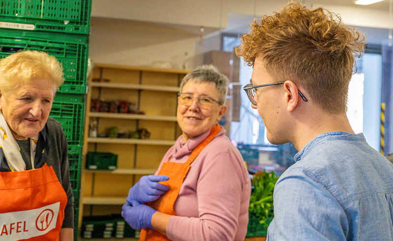 Ein besonderes Augenmerk legte Kliem auf die Gespräche mit den ehrenamtlichen Helfern und den Tafelkunden. „Die persönlichen Geschichten, die ich hier gehört habe, haben mich tief bewegt“, sagte er. „Es ist deutlich geworden, wie wichtig es ist, dass wir als Gesellschaft zusammenhalten und füreinander da sind – gerade in Zeiten der zunehmenden Spaltungen.“ Als wichtigstes Learning aus seinem Tag bei der Tafel nannte Kliem die Erkenntnis, dass Politik vor allem die Aufgabe habe, alle Menschen an der Hand zu nehmen und niemanden auszugrenzen. „Jeder Mensch verdient Unterstützung, unabhängig von seinen finanziellen Möglichkeiten“, betonte er. „Die Tafel ist ein hervorragendes Beispiel dafür, wie wir als Gemeinschaft füreinander einstehen können.“