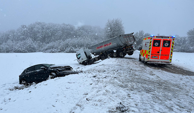 Zu zwei weiteren Unfällen kam es gegen 7 Uhr bei Kleinlintach. In einem Fall geriet ein Auto von der Fahrbahn ab und landete im Graben. Beim zweiten Unfall fuhr ein Auto auf ein anderes Auto auf.