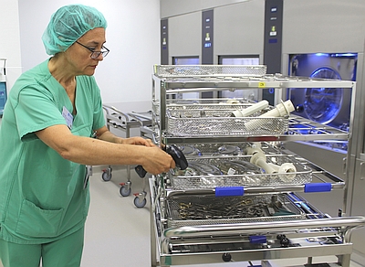 „In der neuen ZSVA wird mit Hilfe von Barcodes und Scannern jeder Arbeitsschritt lückenlos dokumentiert: Vom Waschen der Instrumente in den Reinigungs- und Desinfektionsgeräten, über das Zusammenstellen der Sets anhand von Packlisten, bis zur Sterilisation der Instrumente bei 134 Grad und die Freigabe der wieder einsatzbereiten Sets“, sagte die Leiterin der ZSVA, Barbara Küster. „Diese lückenlose Nachvollziehbarkeit, die hochmoderne technische Ausstattung und die qualifizierten Mitarbeiter in der derzeit modernsten Zentralen Sterilgutversorgungsabteilung Bayerns gewährleisten höchste Sicherheit für unsere Patient“, so Prof. Anetseder.