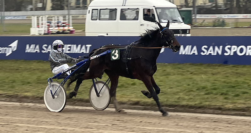In Deutschland statistisch ganz vorne mischt heuer bislang Christoph Schwarz mit und konnte seiner sehenswerten Erfolgsbilanz gleich zwei weitere Siege hinzufügen, darunter den 550. Treffer seiner Laufbahn. Zunächst untermauerte er mit Ocean Eyes die tolle Form des Lets Go-Sohnes, der immer besser wird und immer mehr dazulernt. Dieses Mal braucht es kein Zielfoto, der Sieg fiel nach sofortiger Führung überlegen aus gegen Shun Eck und Velten Charlene. Genauso souverän war Eclectic, die einen tollen Einstand für das Team Lila gab und dieses Mal die ungeliebten Linkskursbögen problemlos meisterte. Tumble Boy und Black Star komplettierten die Wette.
