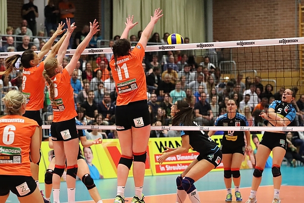 Zu Beginn sah es aber noch so aus, als würde Sonthofens Busfahrer zurecht den Sekt für die Meisterfeier danach kaltstellen. NawaRo startete nervös und lag schnell zurück (0:4). Doch nach der von Straubing genommenen Auszeit fing sich NawaRo. Der Block stand nun sehr gut und auch die Annahme funktionierte immer besser. Die Folge war der schnelle Ausgleich (6:6). Die Halle kochte bereits zu diesem Zeitpunkt und die Begeisterung steigerte sich noch, als beim Stand von 19:18 aus Straubinger Sicht Laura Müller für den Aufschlag eingewechselt wurde. Müller zeigte keine Nerven und servierte sechs Aufschläge in Serie. Die Folge war ein verdienter 25:19 Satzerfolg für NawaRo.