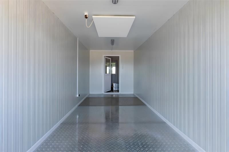 Die Paneele bestehen aus PIR-Sandwichplatten mit einer Standarddicke von 50 mm und einer Mineralwolleisolierung mit einer zusätzlichen Isolierung von 200 mm in der Decke und 150 mm im Boden. Diese Materialien bieten hohe thermische Leistung und schützen zuverlässig vor Witterung und Temperaturschwankungen. Darüber hinaus garantiert das robuste System mit einem Rahmen aus 2 mm starkem, kaltgeformtem, verzinktem Blech, das ausschließlich im Containerbau verwendet wird, Langlebigkeit – ideal für wechselnde Standorte und unterschiedliche Anforderungen.