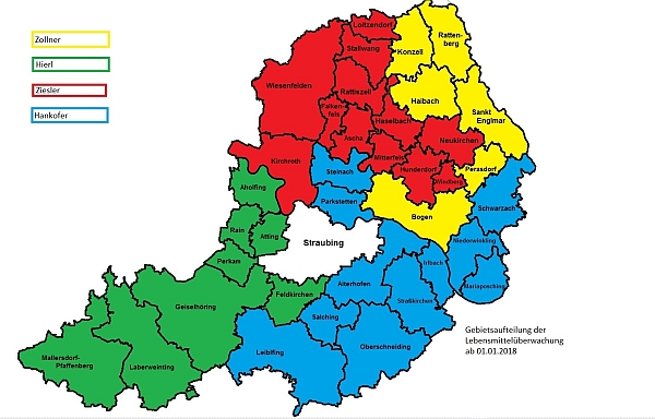 (ra) Wie erst am Freitag vom Landratsamt Straubing-Bogen bekanntgegeben wurde, fand bereits zum 1. Januar im Zuge des Rotationsprinzips der Lebensmittelüberwachung eine Neuaufteilung des Überwachungsgebietes der einzelnen Lebensmittelüberwachungsbeamten statt.