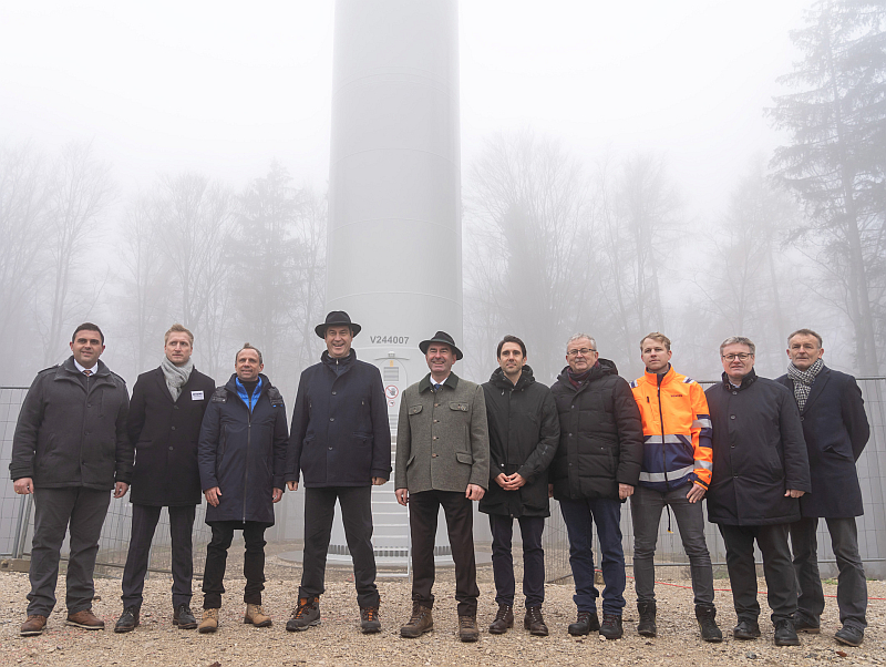 (ra) Als „ein wichtiges Symbol des Aufbruchs und Mahnmal für mehr Windkraft in Bayern“ bezeichnete am Montag der OSTWIND-Geschäftsführer Stefan Bachmaier die erfolgreiche Fertigstellung des Wald-Windparks Schiederhof II in Wiesenfelden, Landkreis Straubing-Bogen. Die Inbetriebnahme erfolgte bei einem Pressetermin gemeinsam mit Bayerns Ministerpräsident Dr. Markus Söder sowie den Staatsministern Hubert Aiwanger (Wirtschaft und Energie) und Thorsten Glauber (Umwelt) im Waxenberger Forst.