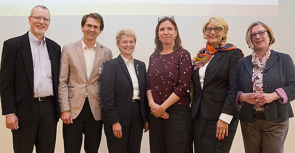 Von links: Palliativmediziner Dr. Wolfgang Häring, Pfarrer Hartmut Grosch, Generaloberin Edith Dürr, Katarina Theissing, Pflegefachkraft, MAS Palliative Care, Pflegedirektorin Angelika Alke, Karin Probst, Business Coach – Foto: Klinikum Landshut