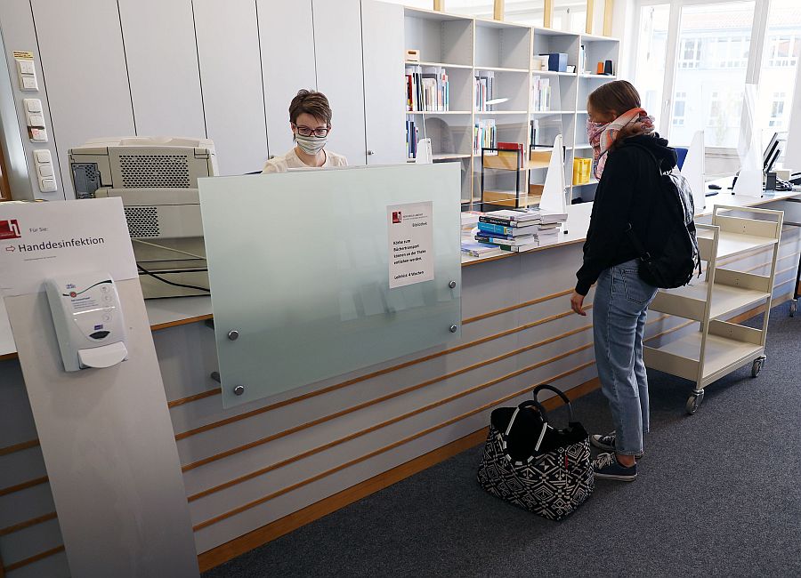 Seit Montag ist die Ausleihe und Rückgabe von Büchern offiziell wieder möglich. Die Bibliothek öffnet ihre Türen Montag bis Donnerstag jeweils von 8.30 bis 15.30 Uhr und freitags von 8.30 Uhr bis 12 Uhr. Es gibt vorerst keinen 24-Stunden-Betrieb. Auch die Arbeits- und PC-Plätze sowie Gruppenarbeitsräume bleiben noch geschlossen, um die Ansammlung von Menschen auf ein absolutes Minimum zu beschränken.
