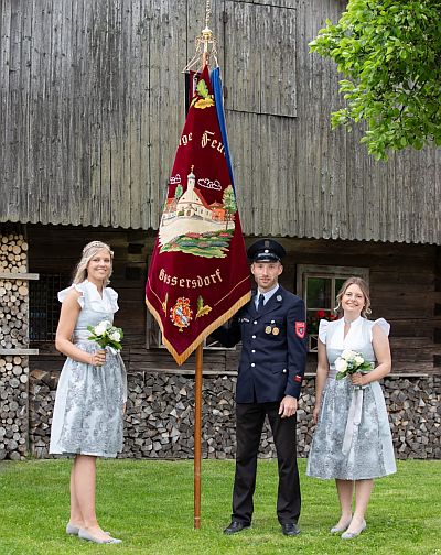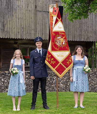 Auch die männlichen Rollen dürfen nicht fehlen. Die Fahnenjunker und Fahnenbegleiterinnen sind tragende Stützen des Zeremoniells. Der Fahnenjunker trägt die Vereinsfahne – ein sichtbares Zeichen von Ehre, Geschichte und Zugehörigkeit. Er wird bei allen offiziellen Anlässen begleitet – von den Fahnenbegleiterinnen, die durch ihre festliche Erscheinung das Gesamtbild abrunden. Ihr Einsatz ist mehr als nur symbolisch – es ist ein sichtbares Bekenntnis zur Feuerwehrfamilie.