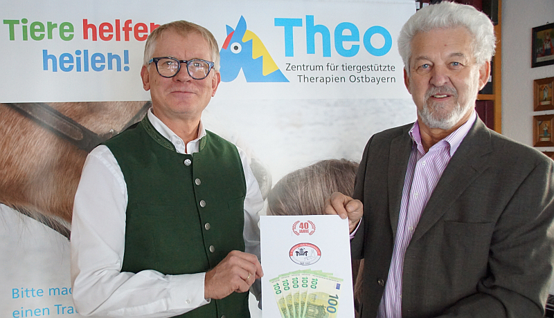 (ra) 500 Euro überreichte Berthold Neppel am 7. Dezember in Regensburg-Schwabelweis an Theo-Projektleiter Thomas März-Kronfeld für das Therapieprojekt „Theo“ des vkm Regensburg. Das Geld wurde bei der Weihnachtsfeier des 1. Oldtimerclub Regensburg gesammelt, um den Bau von Theo – Zentrum für tiergestützte Therapien Ostbayern zu unterstützen, berichtet Neppel bei der Spendenübergabe.