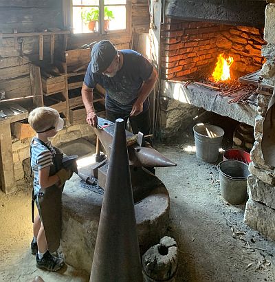 „kleine“ Schmiede am werkeln mit Stefan Fröhlich – Foto: Freilichtmuseum Finsterau/Sylvia Heinrich