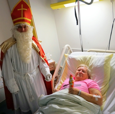 Nikolausbesuch an der Klinik Bogen bei der Patientin Hannelore Kleindl. – Foto: Klinik Bogen/Landinger