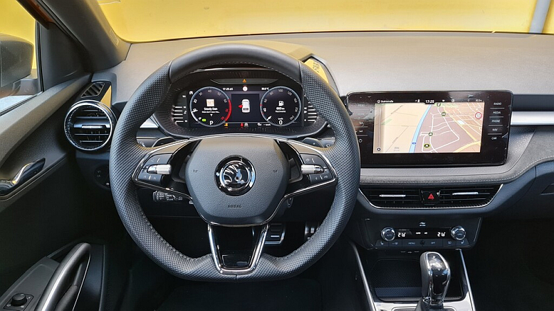 Der 1,5 TSI ist überaus flott unterwegs, seine Fahrleistungen sind beachtlich. In 8,0 Sekunden beschleunigt der 1205 Kilogramm schwere Kleinwagen von 0 auf 100 km/h, seinen guten Geradeauslauf verliert er auch beim Spitzentempo von 225 km/h nicht. Der Motor klingt kraftvoll, aber nicht aufdringlich. Flinke Zwischenspurts mag er besonders. Dabei zeigt sich auch das serienmäßige Doppelkupplungsgetriebe von seiner besten Seite, kaum merklich passt es die Übersetzungen an. Der starke Fabia lässt sich in allen Lebenslagen flüssig und agil bewegen.