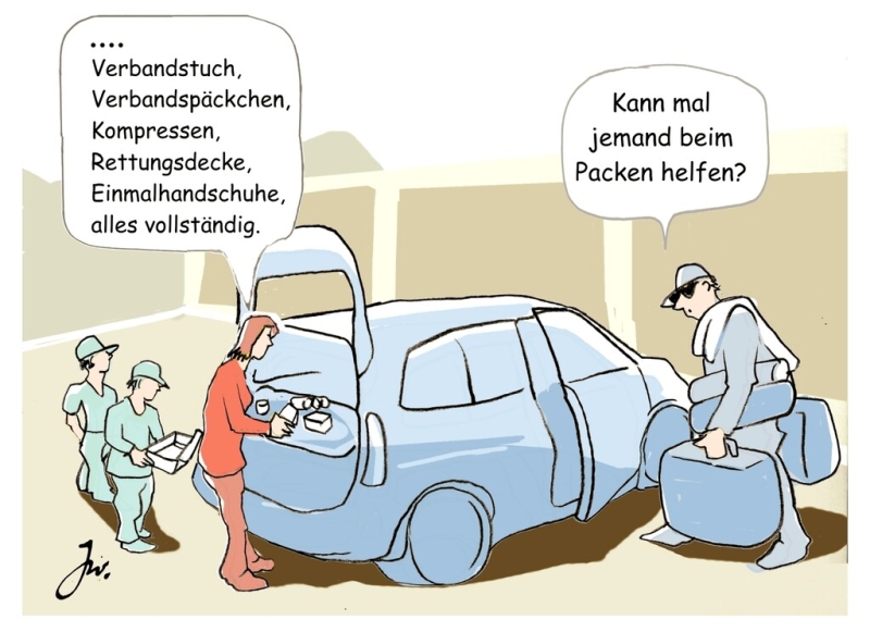 Laut § 35h der Straßenverkehrsordnung (StVO) hat jeder Autofahrer einen Verbandkasten mitzuführen. Für Kraftfahrzeuge mit mehr als 22 Plätzen sind sogar zwei Erste-Hilfe-Koffer vorgeschrieben. Wer gegen diese Vorschrift verstößt oder wer mit einem veralteten Verbandkasten erwischt wird, muss mit einem Bußgeld rechnen. Nur Motorradfahrer sind nicht verpflichtet, Verbandsmaterial an Bord zu haben.
