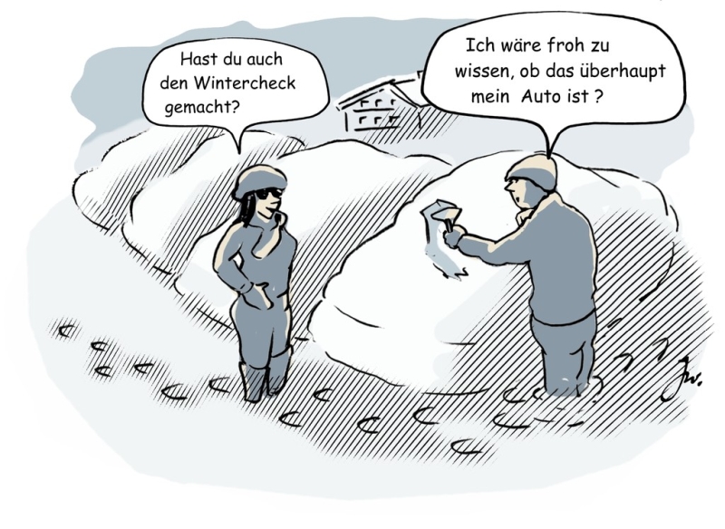 Ist genug Kraftstoff an Bord, um das Ziel zu erreichen oder notfalls auch eine Nacht mit Motorheizung überleben zu können? Reicht der Frostschutz in der Scheibenwaschanlage? Ist eine warme Decke greifbar, vielleicht sogar ein Nothappen und Wasser? Pessimisten oder solche mit schlechten Erfahrungen haben auch eine Schaufel und eine Taschenlampe in Reichweite, auf jeden Fall eine unterhaltsame Lektüre.