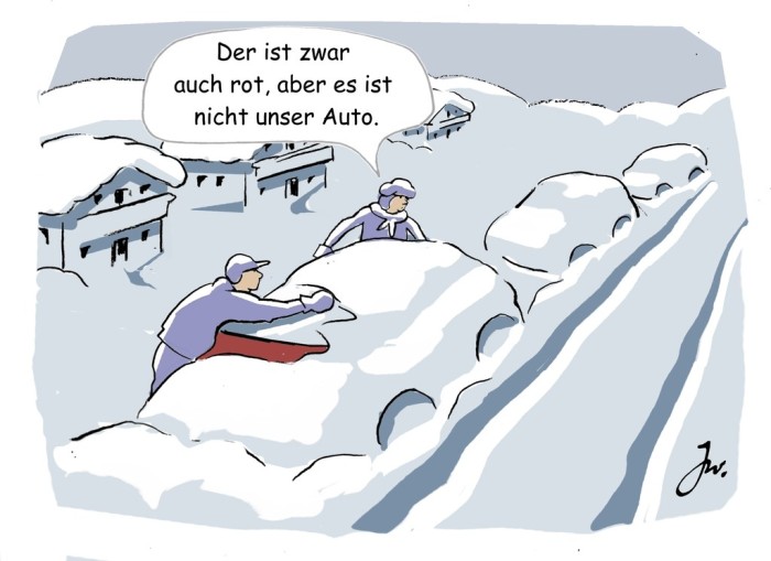 Ebenfalls ganz oben auf der Liste der wichtigen Winterparkregeln steht, sich zu merken, wo genau man sein Fahrzeug zurückgelassen hat. In einem solchen Fall gehört eine präzise Standortbeschreibung zu wichtigen Informationen für den Räumdienst – und verhindert unbeabsichtigte Beschädigungen des Fahrzeugs beim Schneeräumen. Wenn der Winterdienst nicht hilft, muss das Fahrzeug im Bedarfsfall selbst vom Schnee befreit werden. Um dafür gerüstet zu sein, empfiehlt es sich, einen Handfeger und eine Schaufel griffbereit aufzubewahren.