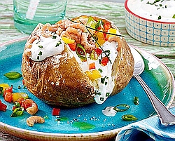 Rezepttipp für die Grillsaison: Kartoffeln mit Kräuterquark, Paprika und Krabben