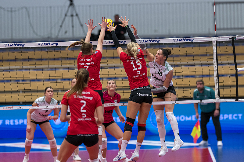 Doch „aufgeben“ ist nicht die Sache der Vilsbiburger Spielerinnen. Sie rappelten sich noch einmal auf und warfen alles in die Waagschale. Münsters Trainer Matthias Prack vertraute zu Beginn des dritten Satzes seiner „zweiten Garnitur“ und die Roten Raben nutzten diese Situation souverän aus: Beim 10:10 schafften sie erstmals den Ausgleich, beim 15:14 erstmals die Führung. Diese gaben sie auch bis zum Schluss nicht mehr her. Am Ende hieß es 25:21 für die Roten Raben und der Erstligist zeigte Nerven.
