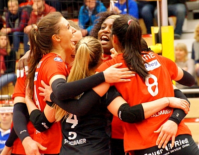 Nun richten sich alle Blicke auf das Match am Sonntag, 16.30 Uhr, beim SC Potsdam. Die Konstellation könnte kaum spannender sein: Potsdam hat als aktueller Vierter drei Zähler Vorsprung auf die Roten Raben, so dass diese mit einem vollen Erfolg zu den Brandenburgerinnen aufschließen könnten. Platz 4 ist bekanntlich von spezieller Bedeutung, weil er Heimrecht im Playoff-Viertelfinale garantiert. „Wir werden gut regenerieren“, so Coach Jonas Kronseder nach dem Sieg in Berlin, „und wir werden am Sonntag bereit sein. Mit Potsdam haben wir nach dem 1:3 im Hinspiel noch eine Rechnung offen.“