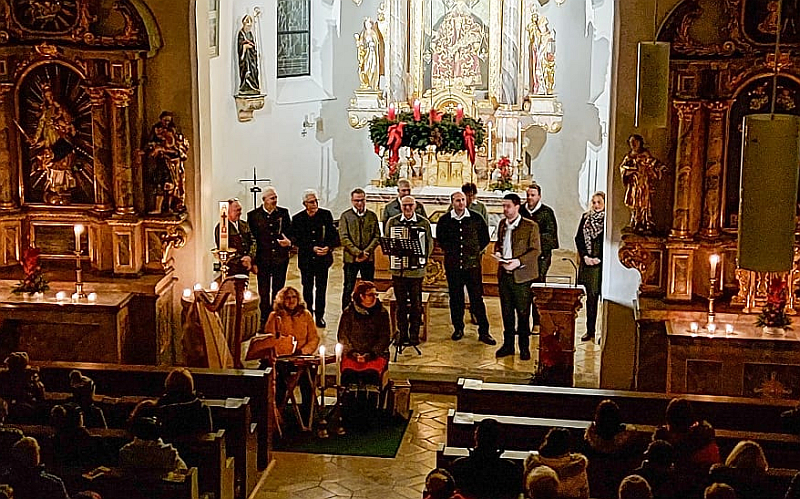 Chorleiter Max Bernhard hatte für seinen Mannerg’sang 2.0 eine vortreffliche Liedauswahl aus waldlerischen und alpenländischen Weisen vorgenommen. Aber auch auf die perfekte Umsetzung der Arrangements hatte er bei den Proben größten Wert gelegt. So war jedes der vorgetragenen Lieder ein durchgehend harmonisches Miteinander aus erster, zweiter Stimme und Bass. Gerade beim sehr sensibel gesungenen „Still, still, still“ war zu spüren, dass die Heilige Nacht nun nicht mehr weit ist.