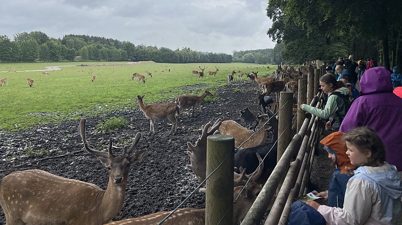 Trotz leichtem Regen in Poing war die Stimmung ungetrübt. Zwar musste die geplante Greifvogelvorführung ausfallen, doch die Begegnungen mit frei laufenden Tieren wie Mufflons und Damhirschen begeisterten die jungen Besucher. Ziegen, Ponys und Hirsche konnten gefüttert und gestreichelt werden, und auch die Braunbären, Wölfe und Luchse sorgten für Staunen. Der weitläufige Spielplatz wurde intensiv genutzt, ehe die Gruppe zum nächsten Programmpunkt aufbrach.
