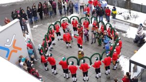 Schäfflertanz auf dem Bogener Klinikvorplatz
