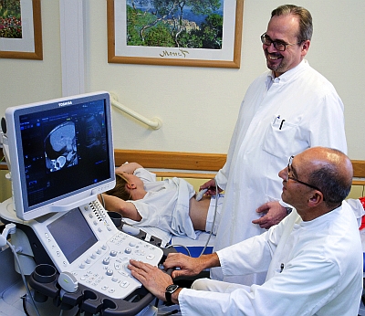 Technisch gesehen ist das neue Ultraschallgerät auf dem allerneuesten Stand: Dank hoch auflösender 3D-Volumendaten können die Radiologen durch Gefäße, Kanäle und anatomische Hohlräume navigieren, als wäre eine Kamera darin. „Wir können von außen bis zu 30 Zentimeter tief erschließen“, erklärt Oberarzt und Ultraschall-Spezialist Abdul Basir Nikpur. Vor allem bei Bauch-Untersuchungen sei dies von Vorteil. Navigiert wird in allen drei Raum-Richtungen und 360 Grad. Als Hauptvorteil sieht Nikpur, dass man mit einem Gerät zwei Verfahren miteinander kombinieren kann. „Das Ultraschall-Bild kann zum Beispiel direkt mit den Daten der Computertomographie vergleichen – simultan und in Echtzeit“, so Nikpur. So verbessere sich die Diagnostik deutlich. „Ein besseres Gerät gibt es derzeit nicht.“