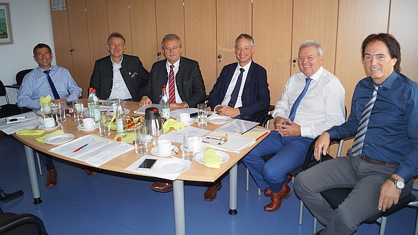 Schulrat Stephan Grotz, MdL Hans Ritt, Landrat Josef Laumer, Oberbürgermeister Markus Pannermayr, Schulamtsdirektor Johannes Müller und Schulrat Heribert Ketterl (von links) nahmen am Bildungsgespräch teil. – Foto: Landratsamt Straubing-Bogen