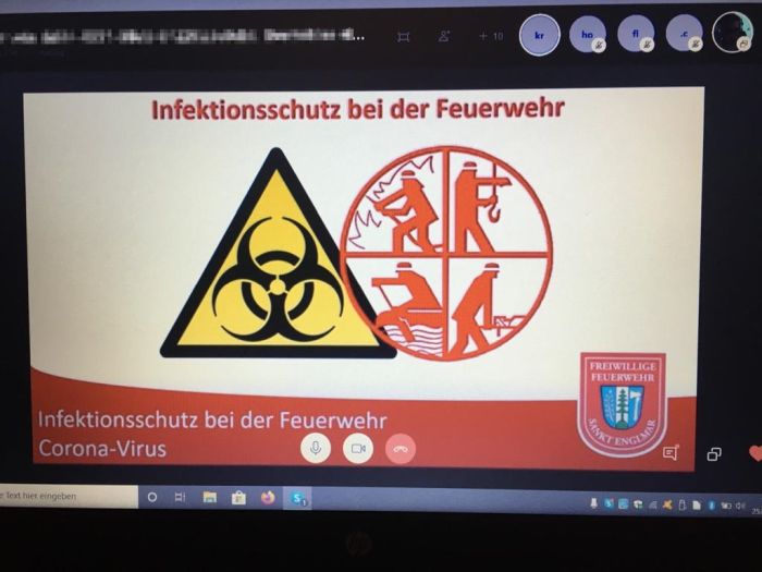 Thema dieser Schulung war der Umgang mit dem Corona-Virus im Bereich des Feuerwehrwesens. Der Dozent Christian Schmelmer hatte dazu eine Präsentation vorbereitet, die an den beiden Abendterminen per Videoübertragung den Kameraden mit vielen Erläuterungen live vorgeführt wurde. Schmelmer vermittelte den Einsatzkräften das nötige Basiswissen zu den Sachverhalten Infektionsschutz, Umgang mit Patienten und Hygienemaßnahmen.
