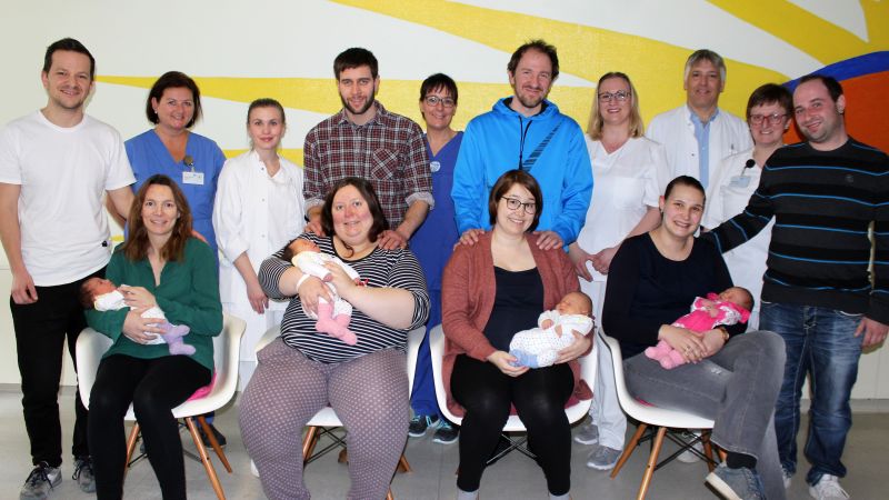 In der Geburtsklinik am Krankenhaus Landshut-Achdorf kam am Samstag, 29. Februar bereits um 2.31 Uhr David Tsakadze als erstes Schalttag-Baby der LAKUMED Kliniken zur Welt. Es folgten um 6.49 Uhr Antonia Schebelle, um 9.38 Uhr Matthias Hammerl, um 13.55 Uhr Emma Reif und um 14.31 Uhr Louisa Obermaier. Beim Fototermin am Montagvormittag gratulierten Chefarzt PD Dr. Lorenz Rieger, Assistenzärztin Christina Lieb, die Hebammen Andrea Strohmaier und Patricia Ernst, Stillberaterin Heike Niklas, Kinderkrankenschwerster Renate Hager sowie die Pflegekräfte der Station zum Nachwuchs.