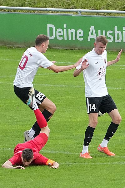 Dann kam der Moment, der die Partie entschied: Ein Befreiungsschlag von Simbachs Christof Dammböck landete nach Missverständnissen zwischen den Straubinger Innenverteidigern und Torwart Enes Dincel direkt vor den Füßen von Sheriff Oseni. Dieser hob den Ball aus rund 40 Metern in das verwaiste Tor zum 2:1 für Simbach.