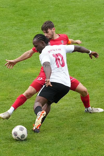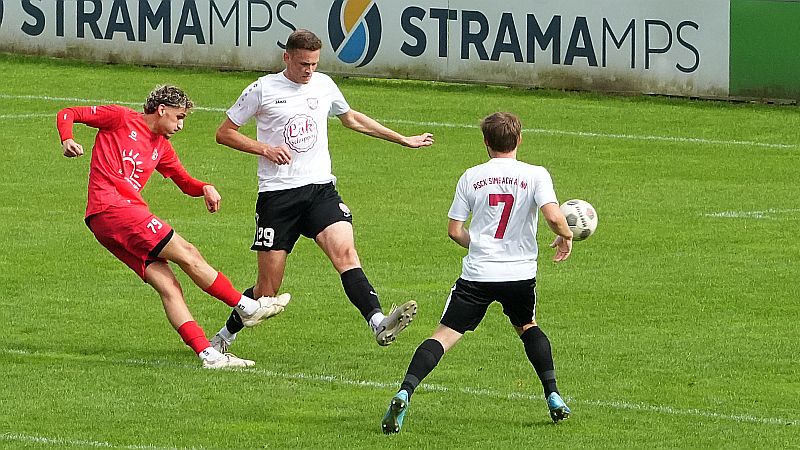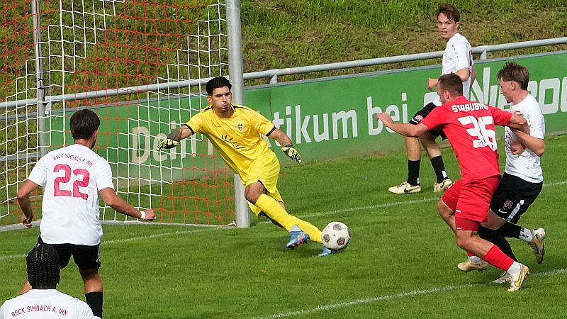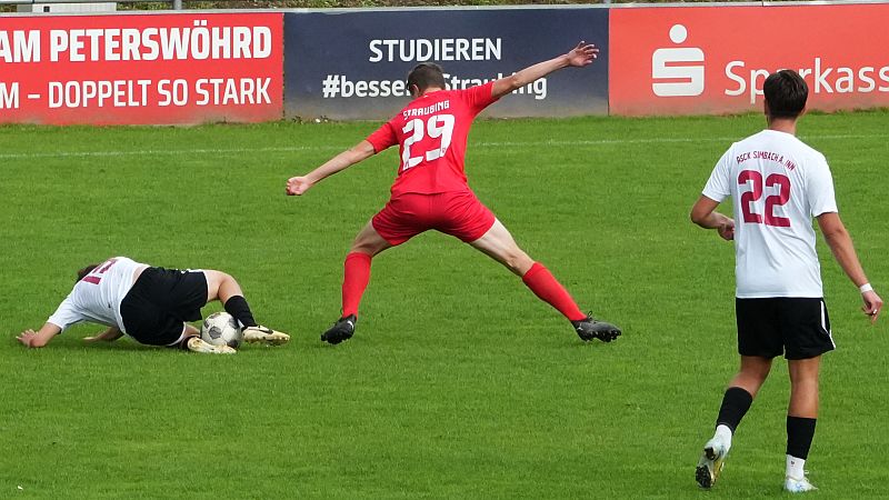 (ak) Der ASCK Simbach am Inn hat am Sonntag beim FSV VfB Straubing den ersten Saisonsieg gefeiert. Mit 2:1 setzte sich das Team aus dem südlichen Niederbayern in einer insgesamt spielerisch schwachen Partie durch. Für Simbach trafen Dino Salkanovic und Sheriff Oseni, auf Straubinger Seite konnte lediglich Kaan Schaffrath zwischenzeitlich ausgleichen.