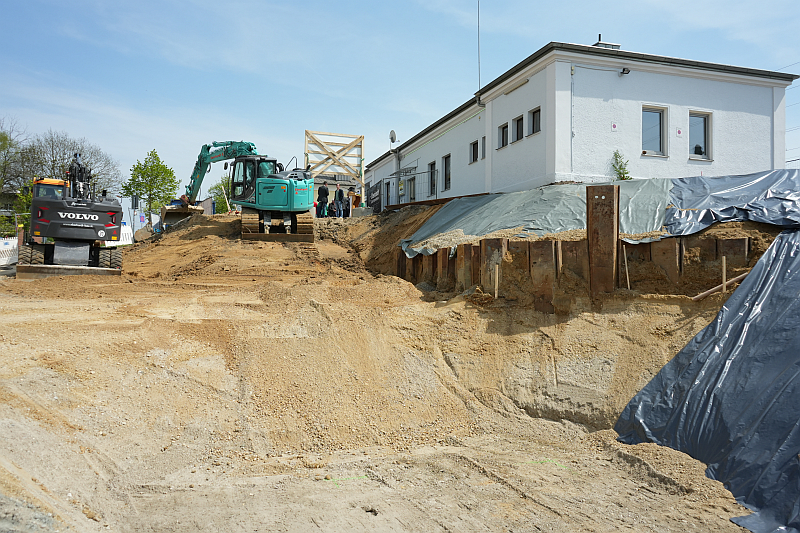 Im Rahmen dieses ersten Bauabschnittes sollen jetzt zwei Stahlbetonstützwände sowie die Gründung der künftigen großen Treppenanlage realisiert werden. In diesem Zug werden auch bereits die für die spätere Ableitung des Oberflächenwassers benötigten Entwässerungsleitungen, Schächte und Rigolen hergestellt. Mit der großen Stützwand wird ein Höhensprung im Gelände von bis zu fünf Meter überwunden. In einem Teilbereich, der sogenannten Bastion, wird an der Außenfassade durch Aufdoppelung der Brettschalung eine zusätzliche optisch wirkungsvolle Tiefenstruktur entstehen. Die Baukosten für die Stützwände und der Rigolenentwässerung betragen 625.000 Euro brutto. Für die weiteren Tiefbau- und Freiflächenarbeiten im Anschluss an den Bau der Stützwände liegt aktuell eine Kostenberechnung in Höhe von 1,15 Millionen Euro vor. Hierin sind die Beleuchtung sowie die Sammelschließanlagen für Räder nicht enthalten.