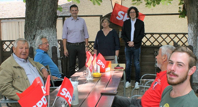 Die Geiselhöringer Ortsvorsitzende Barbara Kasberger stellte Dennis Schötz als Kandidaten des Wahlkreises Straubing/Regen im Rahmen der „Politik im Biergarten“-Veranstaltung kurz vor. „Schötz folgt auf die nicht mehr kandidierende Johanna Uekermann und kommt turnusgemäß aus dem Unterbezirk Regen, der zusammen mit dem Unterbezirk Straubing den Wahlkreis bildet“, erklärte Kasberger den Zuhörern. Bereits am Vormittag stellte Kreisvorsitzender Martin Kreutz Dennis Schötz beim Politischen Frühschoppen der SPD im Biergarten der Taverne Korfu in Geiselhöring vor.