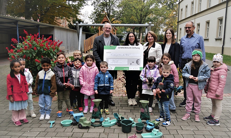 Darüber hinaus konnte von der Spende eine Kiste mit neuem Sandspielzeug sowie große Tiere für den Außenbereich des Kindergartens angeschafft werden.