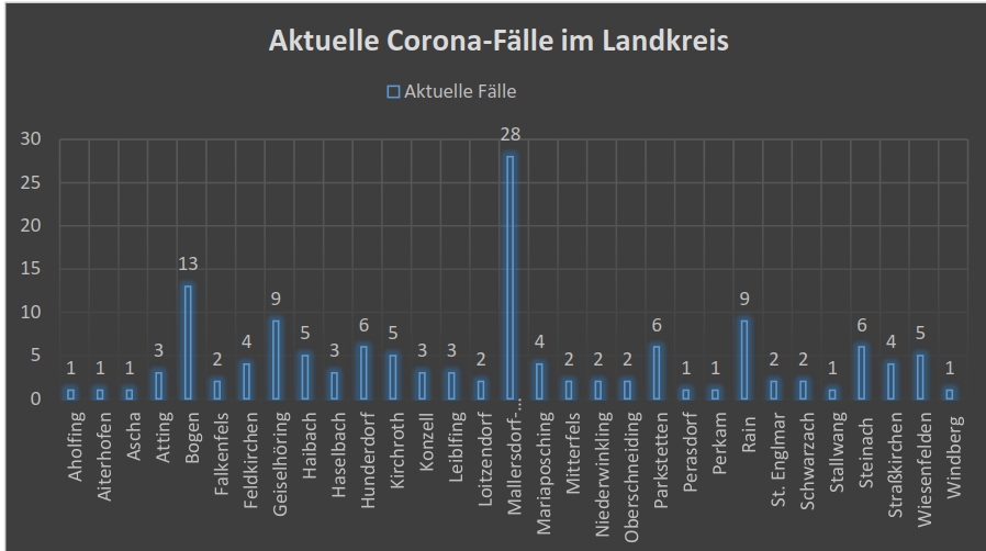 (ra) 26 neue positive Tests auf SARS-CoV-2 wurden am Dienstag vom RKI im Landkreis Straubing-Bogen gemeldet. Ein weiterer Todesfall an bzw. mit Covid-19 aus dem Landkreis lässt die Gesamtzahl der Todesfälle auf nun 110 ansteigen. Die Sieben-Tage-Inzidenz lag nach den offiziellen Zahlen des RKI (Stand Mittwoch 0 Uhr) bei 84,1.
