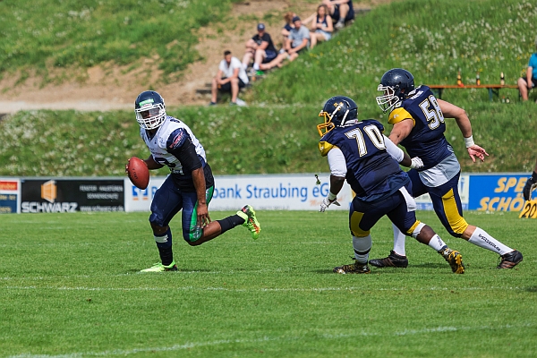 Der erste Score des Tages sorgte jedoch auch dafür, dass die Offense der Rams aufwachte und es entwickelte sich zum Quarterwechsel ein munteres Wechsel-Dich Spiel, da die Spiders Offense nachlegen konnte und die Defense der Spinnen vom starken Passspiel der Rams in Probleme gebracht wurden. Zwar konnte das gastgebende Team regelmäßig die Widder in Bedrängnis bringen, am Ende fand der US-Quarterback aus Nürnberg einen Weg seine Receiver zu bedienen. So stand es zwischenzeitlich 21:21 im Donausportzentrum und die Fans stellten sich schon wieder ein auf eine Partie a al Saarland vor drei Wochen.