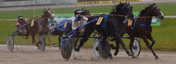 Ein Fahrerdouble gelang dem Straubinger Stammfahrer Robert Pletschacher, der mit Mon Amour H und Orefice zur Siegerehrung eindrehen durfte. Neun Pferde fanden sich im Anna Schumm-Rennen hinter dem Auto ein. Sorbonne (Melanie Fleschhut) hatte den schnellsten Antritt und setzte sich an die Spitze. Andalou (Stefan Hiendlmeier) wollte im Mittelfeld nicht an der Außenspur bleiben, so drückte er aufs Tempo, bis er im zweiten Bogen das Kommando übernommen hatte. In ruhiger Fahrt ging es in die zweite Runde.