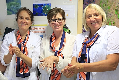 Die Mitglieder der Arbeitsgemeinschaft Hygiene der Klinik Bogen wollen insbesondere dafür sensibilisieren, die zur Abtötung von Keimen erforderliche Dauer von 30 Sekunden einzuhalten und häufig beim Desinfizieren vernachlässigte Stellen wie Daumen, Fingerrücken und Handgelenk mit zu benetzen. Wie korrekt ausgeführte Händehygiene keinesfalls die Hautgesundheit beeinträchtigt, sondern sogar pflegend wirkt, erfahren die Besucher ebenfalls am Informations- und Aktionsstand.