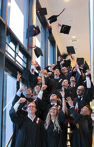 Prof. Horst Kunhardt, Vizepräsident für Gesundheit, gab den Absolventen in seiner Festrede Folgendes mit auf dem Weg: „Sie dürfen stolz auf sich sein. Durch das, was Sie geleistet haben, haben Sie nicht nur Durchhaltevermögen und Leistungsfähigkeit bewiesen, sondern sich auch gegenüber anderen abgehoben.“ Mit der Überreichung der Masterurkunden sowie dem traditionellen Hütewurf endete das Masterstudium für alle 40 Absolventen. Anschließend lud das Weiterbildungszentrum der THD die frisch gebackenen Master of Arts (M.A.) bzw. Master of Business Administration (MBA) zur gemeinsamen Feier ein.