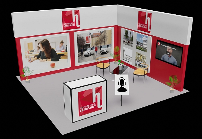 Die SKB findet in diesem Jahr erstmals digital statt. Im Bild ist das Beispiel eines möglichen Messestands zu sehen. – Foto: Hochschule Landshut