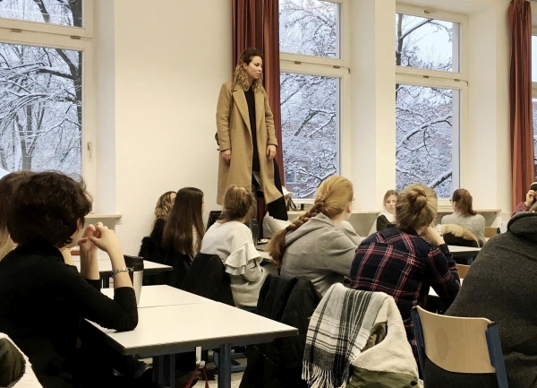Bilder von zerstörten Häusern, verletzten Menschen und überfüllten Flüchtlingsunterkünften beherrschen die Nachrichten. Sie lösen Betroffenheit aus, bleiben aber trotzdem nur Bilder. Der 2004 erschienene Essay „Krieg. Stell dir vor, er wäre hier“ stellt die Flüchtlingsthematik auf den Kopf: Was wäre, wenn der Krieg nicht in einem Land tausende Kilometer entfernt stattfinden würde? Was wäre, wenn er vor unserer Haustür tobte, wenn wir selbst plötzlich fliehen müssten? Die Schüler, die Puscheck bisher mit der Produktion besucht hat, stellten sich dem Gedankenexperiment und folgten dem Stück gebannt und konzentriert. Im Anschluss diskutiert Puscheck die Flüchtlingsproblematik mit ihrem Schülerpublikum.