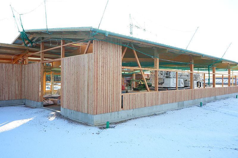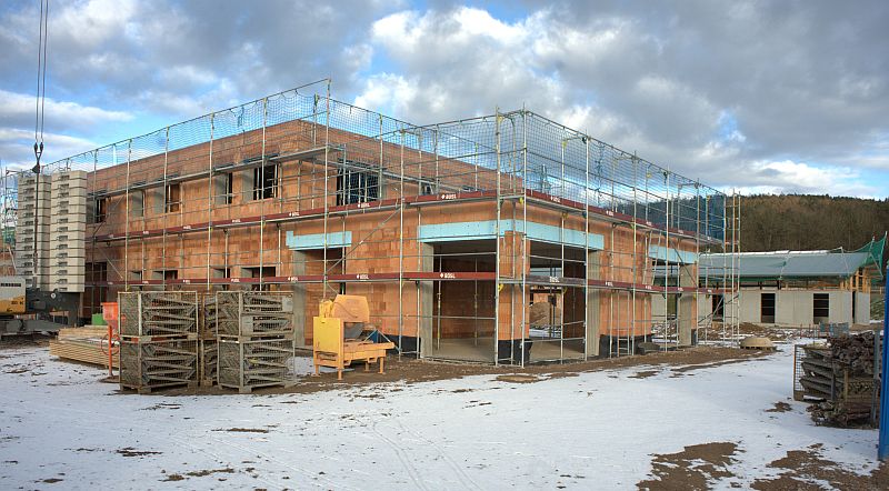 Bereits am 12. Januar gehen die Arbeiten auf der Großbaustelle weiter. Die Holzbaufirma Römmelt will im Februar das Stall- und Lagergebäude und die Mehrzweck-Reithalle fertigstellen. Die Fischer Group beginnt mit der Elektro- und Sanitärinstallation im Pferdestall. Die Firma Schramek & Schramek baut die Pferdeboxen und Stalleinrichtungen. Die Firma Opitz Umwelttechnik sorgt dafür, dass bis Ende Februar unsere Therapiepferde in den Boxen, den Paddocks, im Offenstall mit großem Auslauf und in der Reithalle einen hochwertigen Boden unter den Füßen haben. Und die BERR-Genossenschaft ermöglicht mit einer Fotovoltaikanlage günstigen Ökostrom.