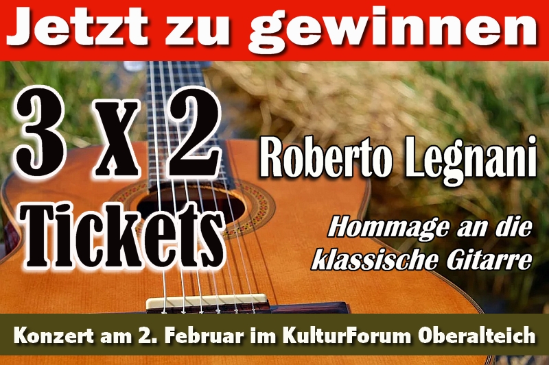 (pw) Roberto Legnani – ein Gitarrenvirtuose gibt am Sonntag, 2. Februar im KulturForum Oberalteich ein Konzert, welches er als „Hommage an die klassische Gitarre“ bezeichnet. Gewinnen Sie jetzt zwei Tickets. Insgesamt hat uns der Veransalter 3×2 Tickets zur Verfügung gestellt.