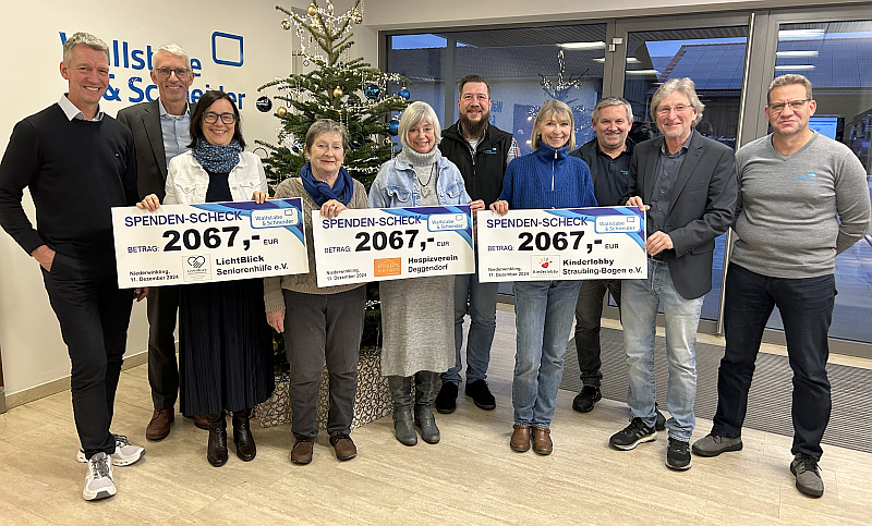 (ra) Der Betriebsrat sowie die Geschäftsführung des Dichtungsspezialisten Wallstabe & Schneider in Niederwinkling haben am Mittwoch eine Spende über insgesamt 6200 Euro an drei Vereine übergeben. Die stolze Summe entspringt der traditionellen Weihnachtsaktion des Betriebsrats. Bereits im November wurden die Mitarbeiter um freiwillige Spenden in Form von Geld oder Überstunden gebeten – und so kamen beachtliche 3096 Euro zusammen. Die Geschäftsführung verdoppelte – wie bereits die Jahre zuvor – den gesammelten Betrag und rundete das Ergebnis auf.
